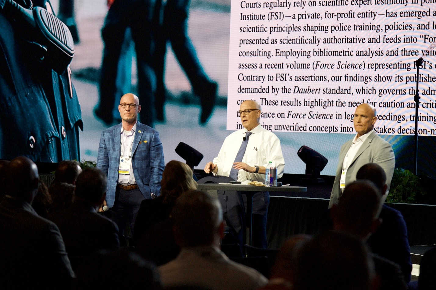 PERF members, As I wrote in the column previewing our Town Hall Meeting in Denver, I was particularly excited to host a debate on the reliability of the Force Science Institute’s findings. Most of you are probably familiar with Force Science, which conducts research and provides training and expert testimony on police use of force. But in case you aren’t: According to the organization itself, Force Science “consists of three interconnected divisions:” (1) research, which conducts scientific investigations and presents and publishes its findings in academic and professional venues; (2) training, which applies the research division’s work by delivering presentations summarizing the results to a variety of legal and law enforcement professionals; and (3) consulting, which lends the institute’s expertise to entities engaged in examining and determining “the appropriateness of an officer’s response during a force encounter.” The authors of a recent article in Police Quarterly questioned the reliability of Force Science’s research: “Contrary to [Force Science’s] assertions, our findings show its published materials fail to meet the scientific rigor demanded by the Daubert standard, which governs the admissibility of scientific evidence in U.S. courts. These results highlight the need for caution and critical scrutiny of such evidence, and suggest that reliance on Force Science in legal proceedings, training programs, and policing policies risks introducing unverified concepts into high-stakes decision-making contexts.”